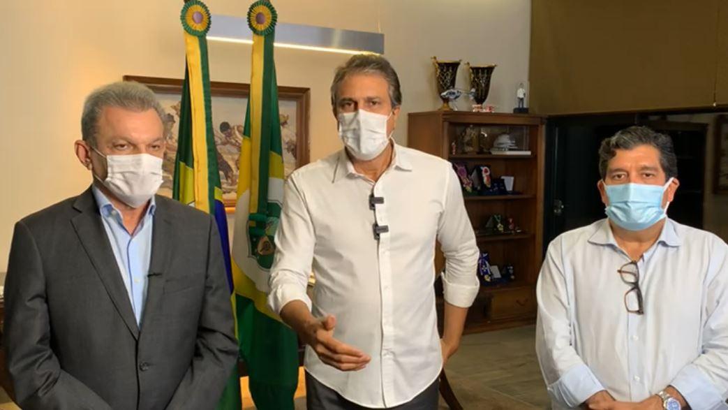 Legenda: Camilo fez o anúncio ao lado do prefeito de Fortaleza e do secretário da Saúde do Estado